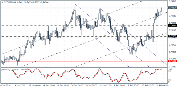 NZDUSD (0.7420): The New Zealand dollar is seen testing the highs around 0.7420 level, marking the highs established from two weeks ago. The reversal in the price action suggests upside momentum with the U.S. dollar continuing to remain weak. Watch for a retest of support near the 0.7333 region which served as resistance. To the upside, NZDUSD could be targeting 0.7480 level where the next main resistance level will be tested.