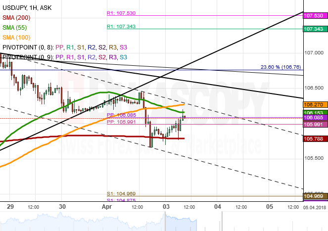 A breakout did occur mid-session; however, the strong downside momentum which was caused primarily by US-China trade dispute pushed the American currency considerably lower down to the 105.65 mark. The pair was subsequently guided by the 200-hour SMA which halted any attempts to move below the 105.75 level.