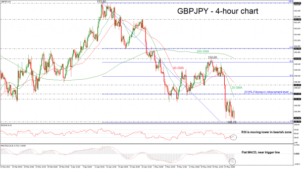 GBPJPY completed five straight negative days with strong momentum, while during Friday’s session the price is paring some losses. On Thursday, the pair recorded a fresh 11-week low of 145.67 and is trading slightly higher from this trough. The neutral to bearish picture in the short term looks to last for a while longer after prices failed to break below 145.67 over the last couple of sessions in the 4-hour chart.