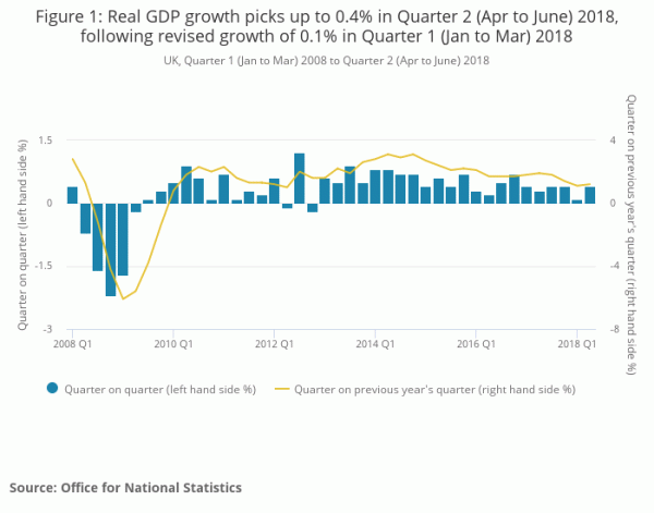 UK Q2 GDP was finalized at 0.4% qoq, unrevised. Growth were driven by services sector, which increased by 0.6%, partly on retail sales. Household spending grew 0.4% but business investment dropped notably by -0.7%. ONS noted that “the recent narrative on UK GDP remains unchanged – the underlying trend is still one of slowing real GDP growth.” Also from UK, current account deficit widened to GBP -20.3B in Q2.