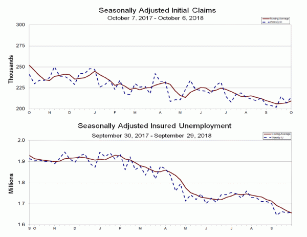 Initial jobless claims rose 7k to 214k in the week ended October 6, missed expectation of 205k. Four-week moving average of initial claims rose 2.5k to 209.5k. Continuing claims rose 4k to 1.66m in the week ended September 29. Four-week moving average of continuing claims dropped -10k to 1.656m, lowest since August 18, 1973.