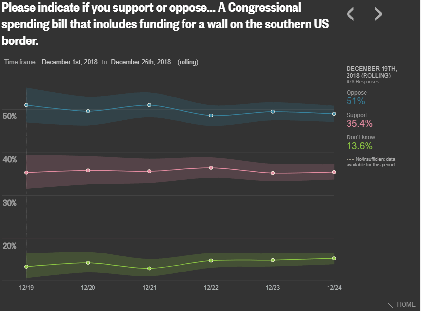 Meanwhile, 49% said they opposed to funding for the border wall, and only 36% supported it.
