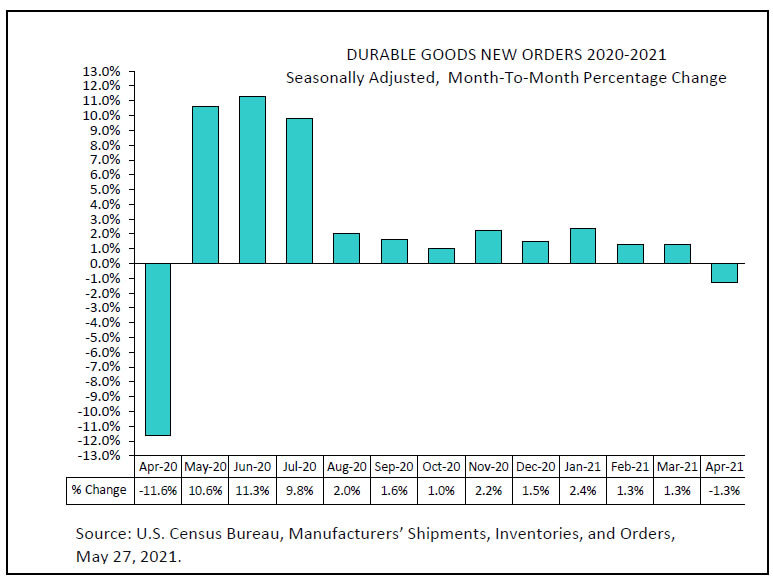 US durable goods orders dropped -1.3% mom to USD 246.2B in April, worse than expectation of 0.8% mom rise. That’s the first contraction since eleven consecutive monthly growth. Excluding transportation, new orders rose 1.0% mom, above expectation of 0.7% mom. Ex-defense orders were virtually unchanged. Transportation equipment dropped -6.7m to USD 68.9B.