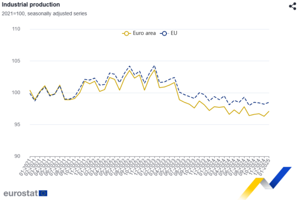 Across the broader European Union, industrial production rose by a more modest 0.3% mom. Among individual member states, Lithuania (+4.6%), Portugal (+3.7%), and Austria (+3.3%) recorded the strongest gains, while Malta (-12.9%), Denmark (-10.6%), and Slovakia (-7.3%) saw the sharpest declines.