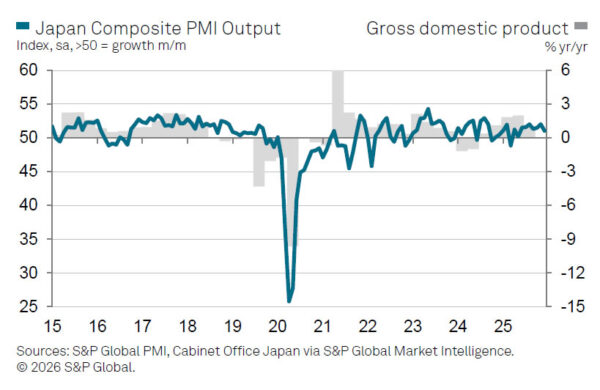 Japan’s service sector lost some momentum at the end of 2025, with Services PMI finalized at 51.6 in December, down from 53.2 in November. Composite PMI eased to 51.1 from 52.0, marking a seven-month low.