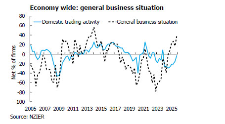 NZIER noted that while a gap remains between headline confidence and firms’ own domestic trading activity, the direction of travel is clearly improving. The survey suggests the impact of earlier interest-rate cuts is now filtering through the broader economy, lifting sentiment even as activity indicators lag.