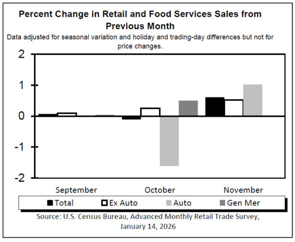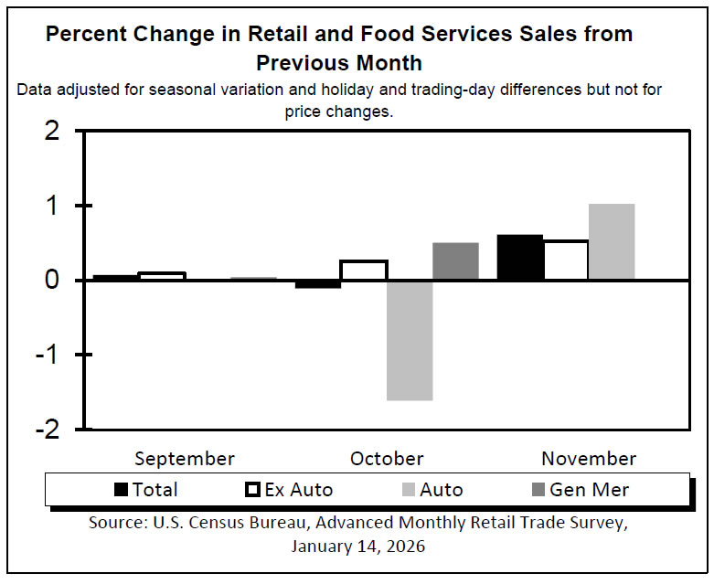On a quarterly basis, total retail sales for the September–November period were up 3.6% from a year earlier.