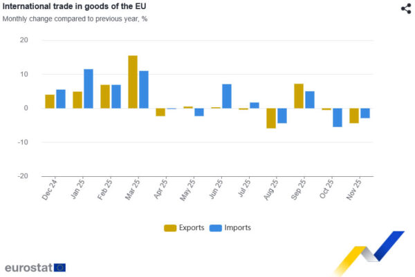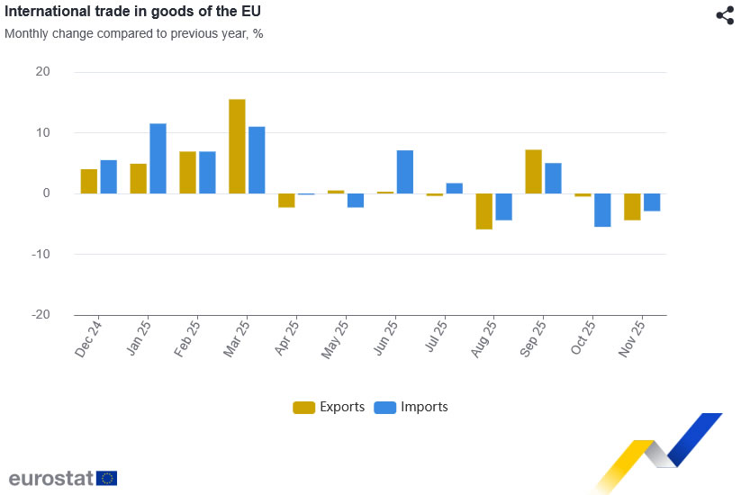 HomeLive CommentsEurozone exports fall -3.4% yoy in Nov, EU down -4.4%, external demand...