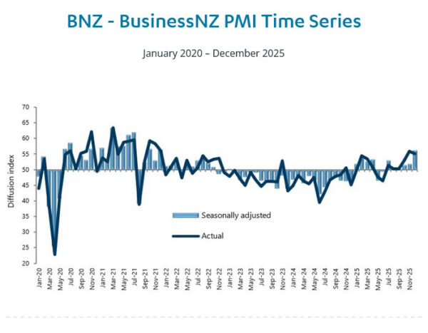 New Zealand’s manufacturing sector ended 2025 on a strong footing, with the BusinessNZ Performance of Manufacturing Index jumping sharply from 51.7 to 56.1 in December. The reading marked the highest level of activity since December 2021 and moved decisively above the long-run average of 52.5.