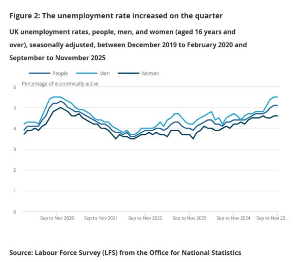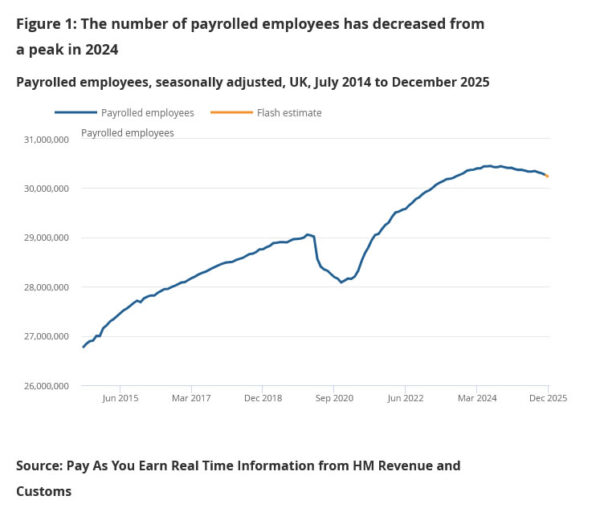 UK labor market data showed further signs of cooling in December, led by outright job losses. Payrolled employment fell by -43k (-0.1% m/m), while the claimant count rose by 17.9k, pointing to softening hiring demand as growth momentum slows.