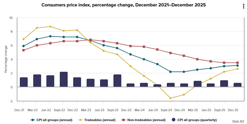 New Zealand inflation accelerated again. Headline CPI rose 3.1% yoy, up from 3.0% and above expectations of 3.0%, pushing inflation back above the RBNZ’s 1–3% target band. It marked the highest annual rate since Q2 2024.