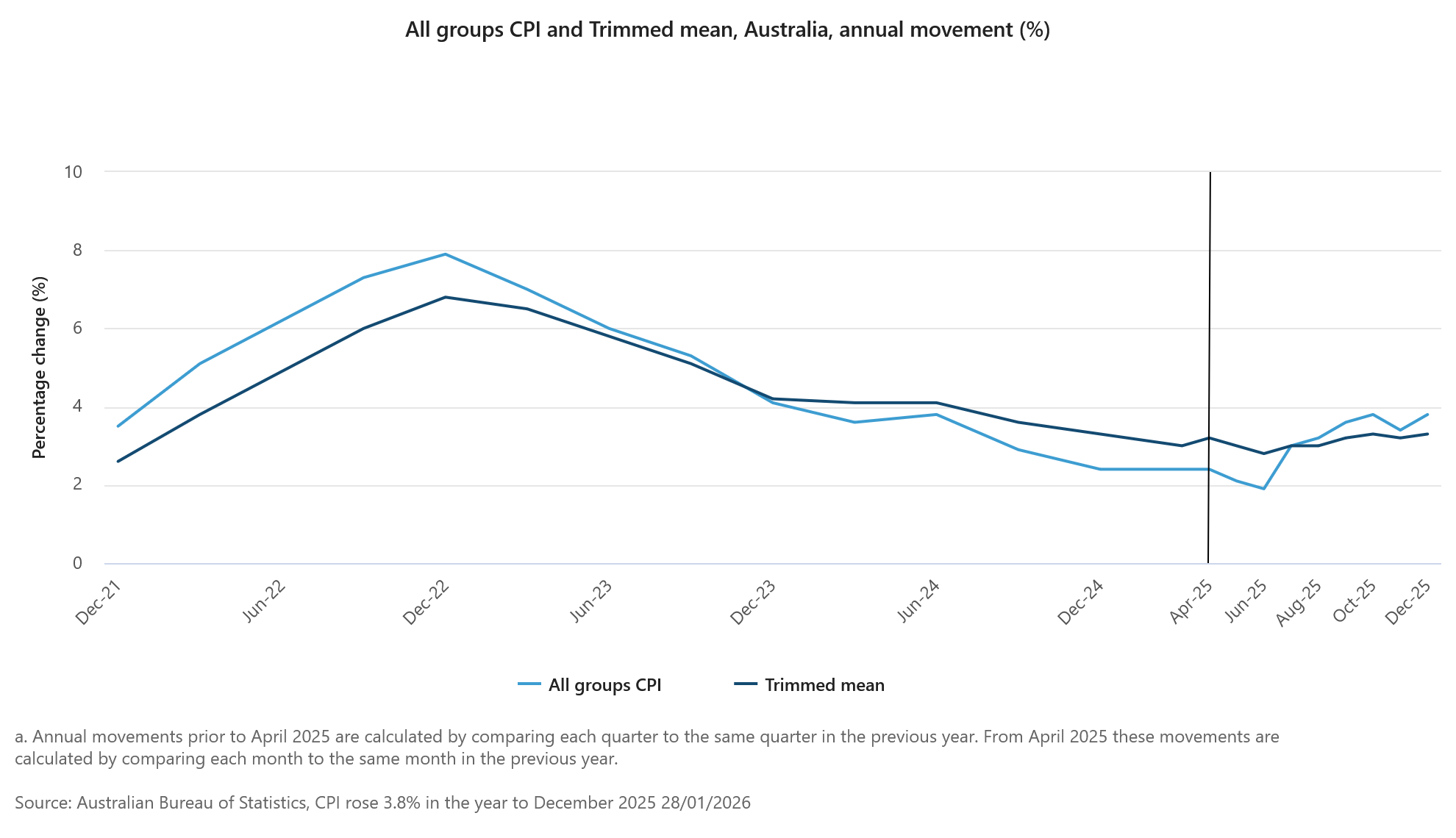 December’s monthly details added to that unease. Headline CPI jumped 1.0% mom, lifting the annual rate from 3.5% yoy to 3.8%, both above expectations. Trimmed mean CPI rose a more modest 0.2% mom, but annual core inflation still edged up from 3.2% yoy to 3.3% yoy.