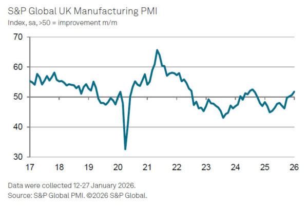 UK PMI Manufacturing was finalized at 51.8 in January, up from December’s 50.6 and marking a 17-month high. The reading signals a solid start to 2026 for the sector, showing resilience despite a challenging backdrop of geopolitical tension and trade uncertainty.