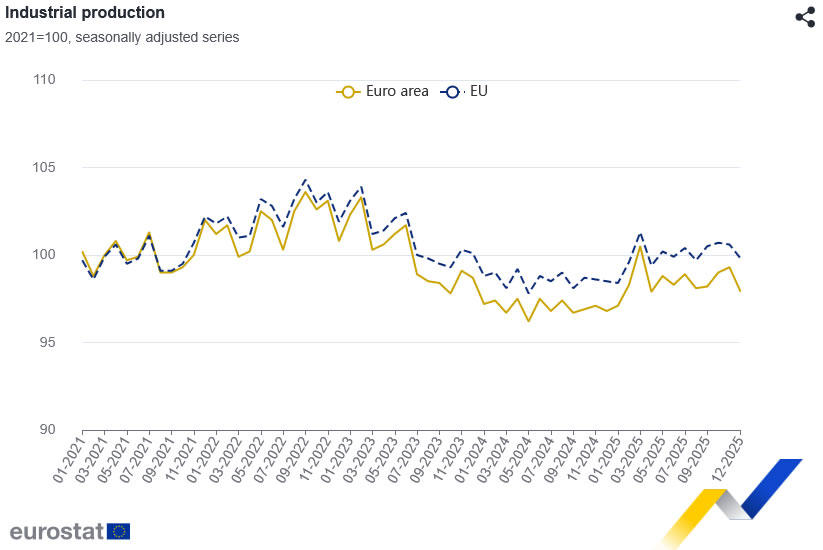 HomeLive CommentsEurozone industrial output contracts -1.4% mom in December, capital goods drag