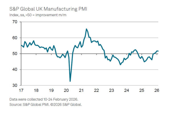 UK PMI Manufacturing was finalized at 51.7 in February, easing marginally from January’s 17-month high of 51.8 but remaining firmly in expansion territory. The data suggest that the sector has made an “encouraging start” to 2026, with output rising at the fastest pace in 17 months as new orders improved across both “home and overseas markets”.