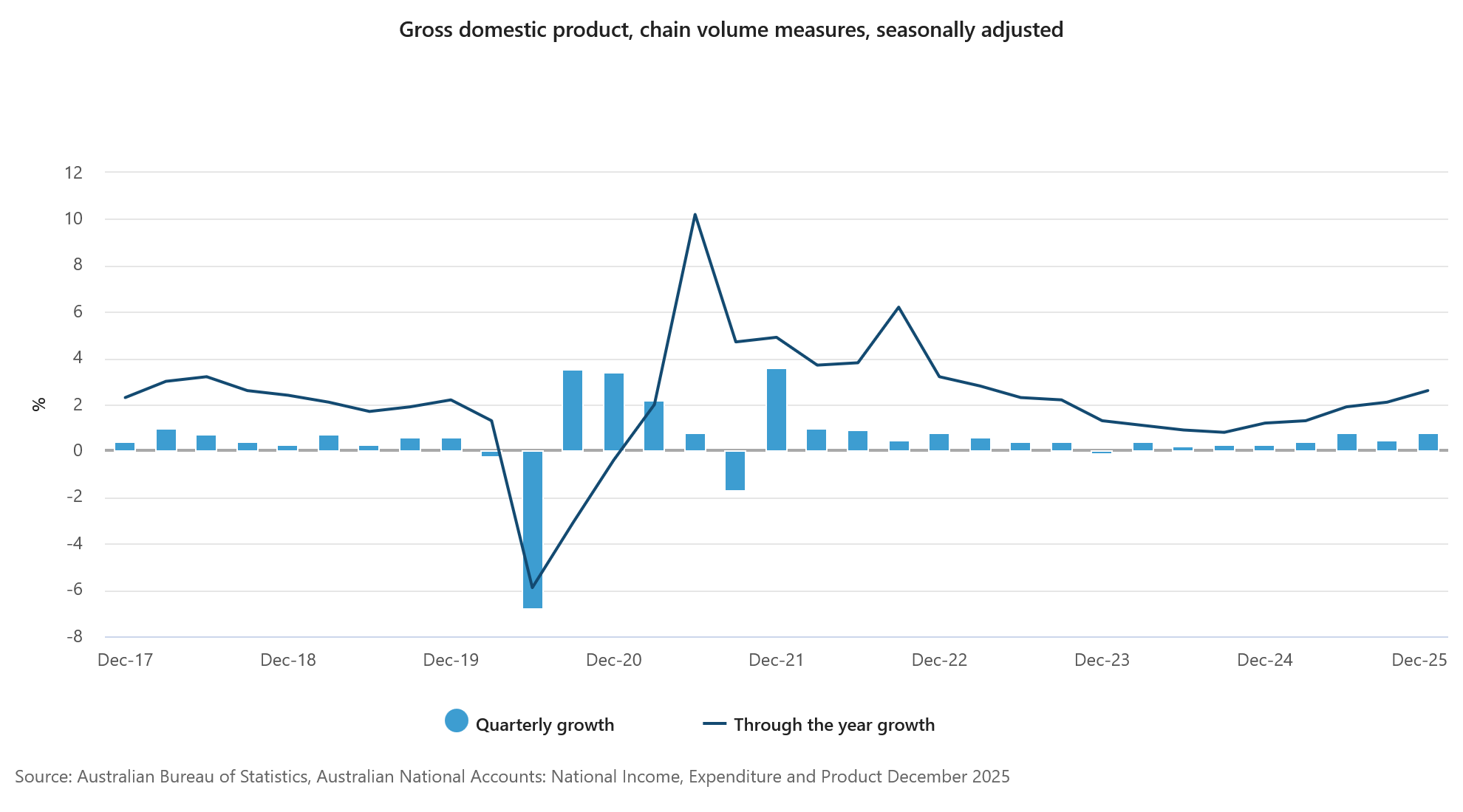 The expansion was broad-based, with output rising in 17 of the economy’s 19 industries. Both public and private demand contributed equally to the result, each adding 0.3 percentage points to overall growth. Household activity also showed resilience, with discretionary spending increasing 0.4% during the quarter, helped by strong retail events such as Black Friday.