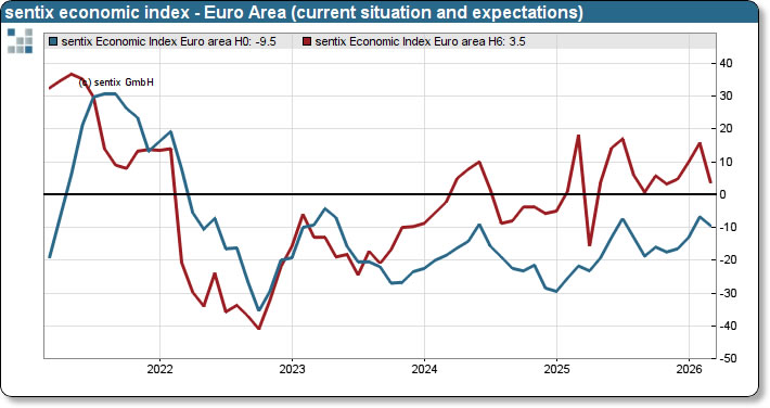 According to Sentix, the survey offers an early snapshot of the economic impact following the outbreak of the Iran war. Attacks on energy infrastructure and disruptions to shipping in the Persian Gulf have driven a sharp surge in oil prices, which in turn is weighing heavily on investor sentiment. The decline in expectations is particularly notable as it casts doubt on the Eurozone’s tentative economic recovery seen in recent months.