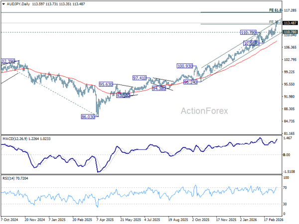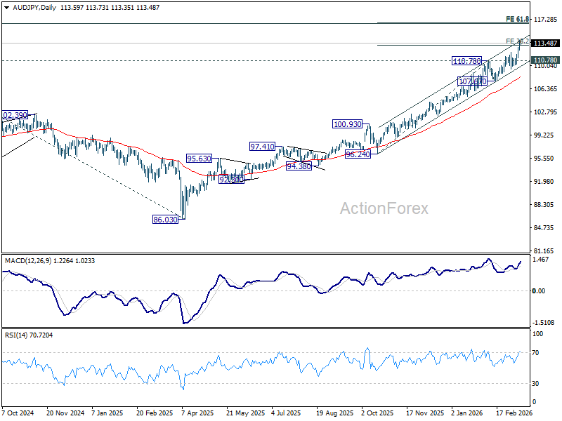 Technically, AUD/JPY has been one of the clearest beneficiaries of this shift in expectations. The cross surged above 38.2% projection of 96.24 to 110.78 from 107.67 at 113.22 this week. While the cross is now testing the ceiling of its rising channel and could see short-term consolidation, the broader outlook remains bullish as long as the former resistance at 110.78 holds as support. The next upside target for AUD/JPY is 61.8% projection at 116.20.