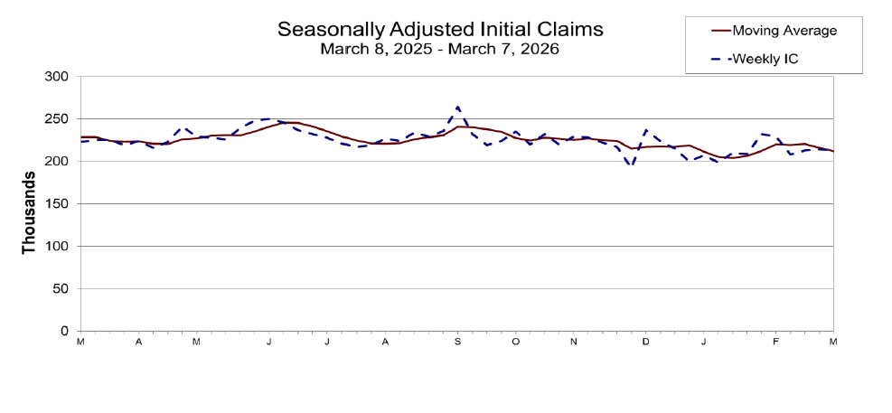 US initial jobless claims fell -1k to 213k in the week ending March 7, below expectation of 215k. Four-week moving average of initial claims fell -4k to 212k.