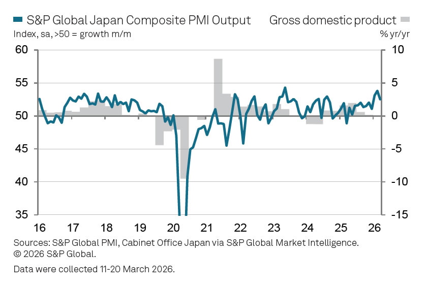 The slowdown coincided with a sharp rise in input costs, with inflation accelerating to its fastest pace in nearly a year. According to S&P Global, higher energy prices and supply chain disruptions linked to the Middle East conflict were key drivers, alongside a weaker Yen and rising labor costs. While factory gate prices increased more quickly, service providers raised charges at a slower pace, resulting in a squeeze on margins.