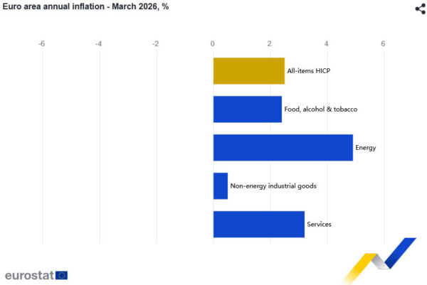 Eurozone inflation accelerated sharply in March, with headline CPI rising from 1.9% yoy to 2.5% yoy, matching expectations and marking the highest level since January 2025. The jump was driven primarily by a reversal in energy prices, which surged from -3.1% yoy to 4.9% yoy, reflecting the impact of rising oil costs linked to ongoing Iran War.