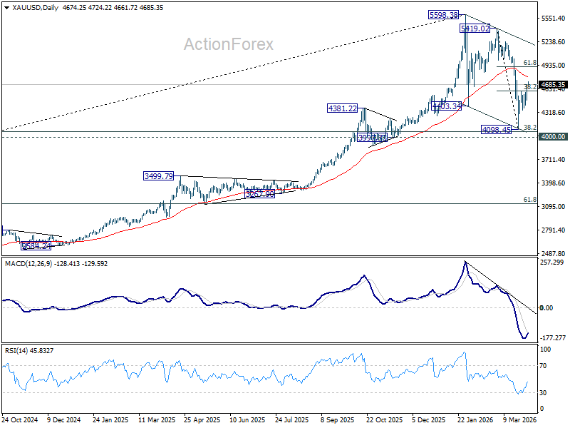 On the flip side, rejection at 55 D EMA followed by a break below 4,482.53 minor support would argue that the rebound has run its course. That scenario would likely see Gold retest the 4000 psychological level before forming a more durable bottom.