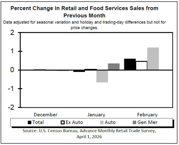 On a yearly basis, headline sales rose 3.7% yoy, while total sales for the December 2025 through February 2026 period increased 3.1% from a year earlier. Retail trade sales were also up 0.6% mom from January and 3.5% yoy. The data supports the case for a still-resilient US economy, which could keep the Fed cautious on easing as solid demand persists.