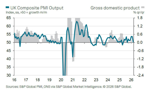 The sharp loss of momentum reflects a deterioration in demand conditions. According to Tim Moore, rising geopolitical tensions have “encouraged greater risk aversion”, with both businesses and consumers cutting back spending and delaying investment decisions. As a result, output growth in the services sector has weakened significantly.