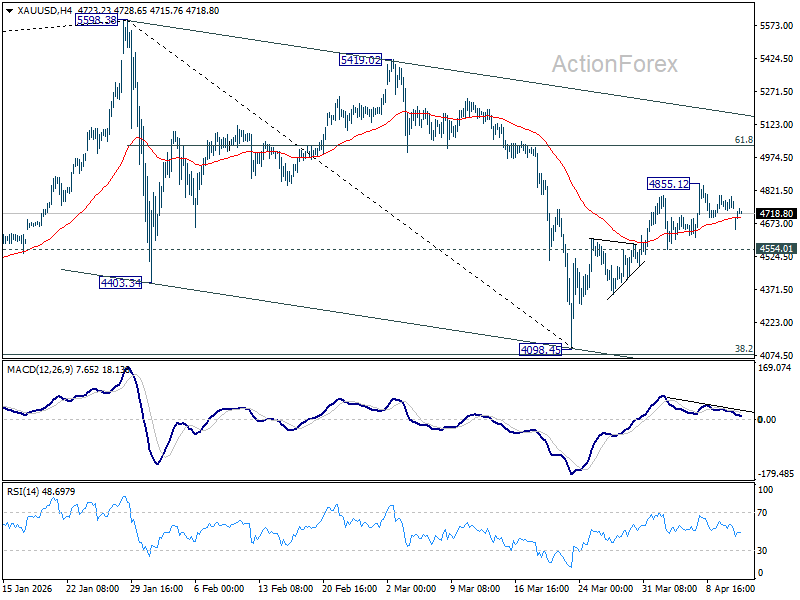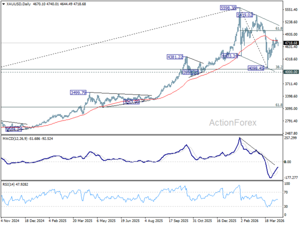 On the downside, a break below 4,554.01 minor support would be an early signal that the rebound has completed. Such a move would shift focus back toward the 4,098.45 low, with scope for an extension toward 4,000 psychological level.