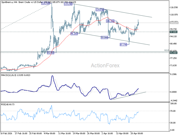 Technically, Brent’s break above 106.10 resistance marks a key turning point. The earlier decline from 114.81 appears to have bottomed at 87.79, and the trend is now shifting higher, supported by strong momentum. The bias has now shifted back to the upside, with prices expected to extend higher as long as 97.58 support holds.