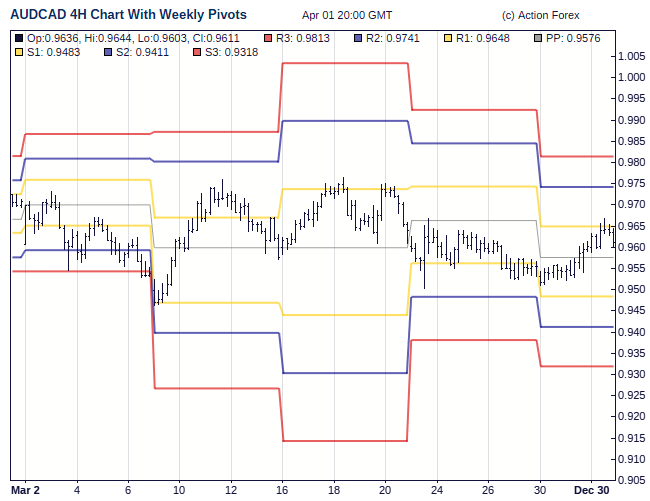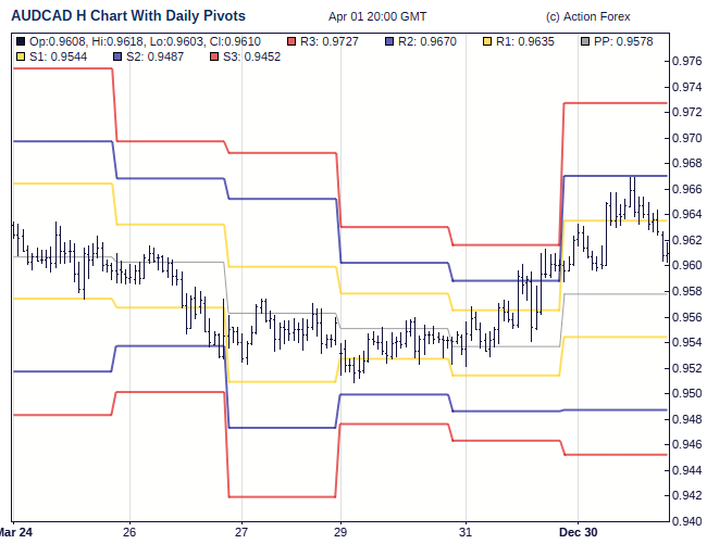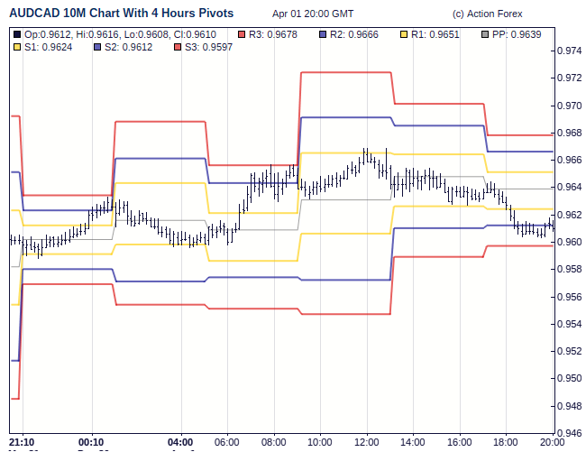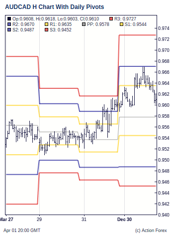 Pivot points are very useful tools that use the previous bars' highs, lows and closings to project support and resistance levels for future bars. Daily pivot points are useful for swing trading; while 4 hour pivot points are useful for intraday trading. Longer term pivot points provide an idea of where key support and resistance levels should be. Place the pivot points on your charts and see how traders appear to give pivot point levels a lot of respect.