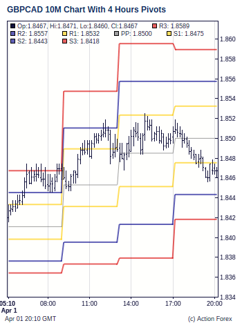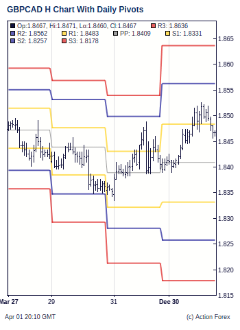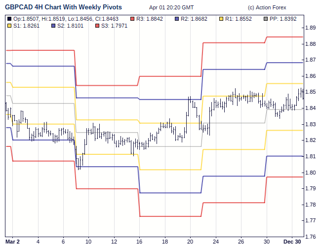 Pivot points are very useful tools that use the previous bars' highs, lows and closings to project support and resistance levels for future bars. Daily pivot points are useful for swing trading; while 4 hour pivot points are useful for intraday trading. Longer term pivot points provide an idea of where key support and resistance levels should be. Place the pivot points on your charts and see how traders appear to give pivot point levels a lot of respect.