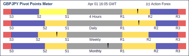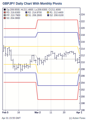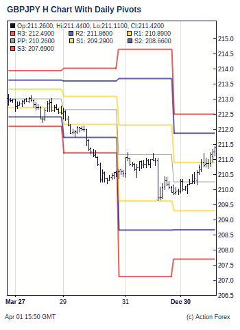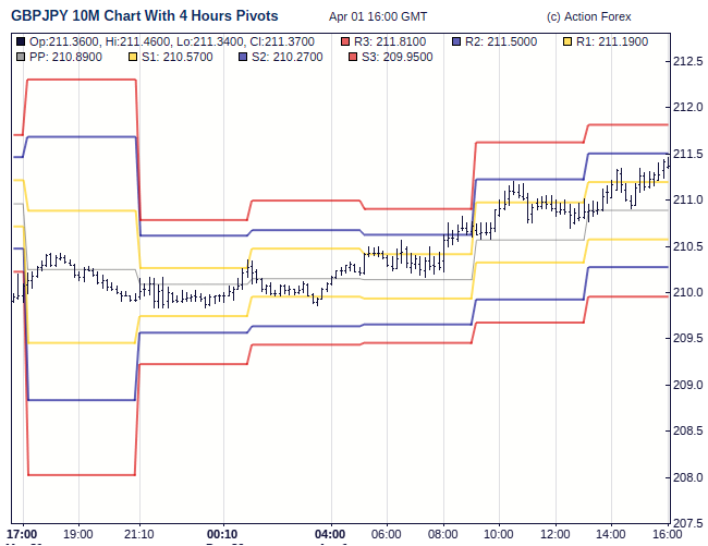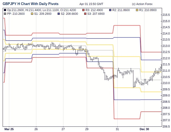 Pivot points are very useful tools that use the previous bars' highs, lows and closings to project support and resistance levels for future bars. Daily pivot points are useful for swing trading; while 4 hour pivot points are useful for intraday trading. Longer term pivot points provide an idea of where key support and resistance levels should be. Place the pivot points on your charts and see how traders appear to give pivot point levels a lot of respect.