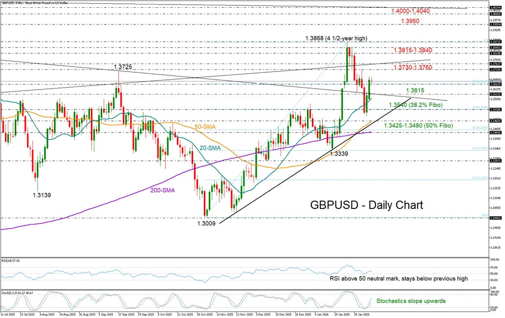 On the downside, initial support sits around 1.3615, backed up by the 20-day SMA. A break lower could shift focus towards the 1.3540 area, where the 38.2% Fibonacci retracement of the October–January rally lines up. Below that, the trendline near the 50-day SMA may prevent any deeper pullback near 1.3480, while the 200-day SMA around 1.3425 should help prevent a broader bearish turn.
