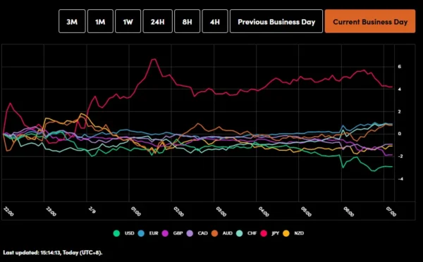 For the day so far, Dollar sits at the bottom of the performance table, followed by Kiwi and Sterling. Swiss Franc leads gains, with Euro and Yen also firmer, while Loonie and Aussie are trading in the middle of the pack.