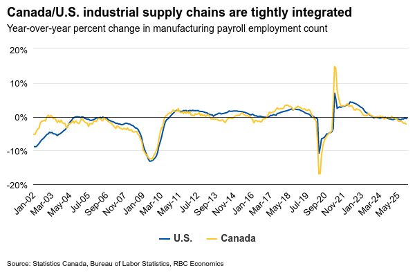 There are clearly key differences in the current drivers of inflation in Canada and the U.S. Tariff increases in Canada over the last year have been limited, and business surveys like the BoC’s Business Outlook Survey point to easing business input cost inflation.