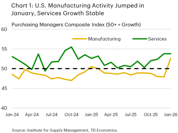 - The ISM Purchasing Managers Index reports showed solid growth in manufacturing and services activity in January, suggesting the economy entered 2026 on a solid footing.