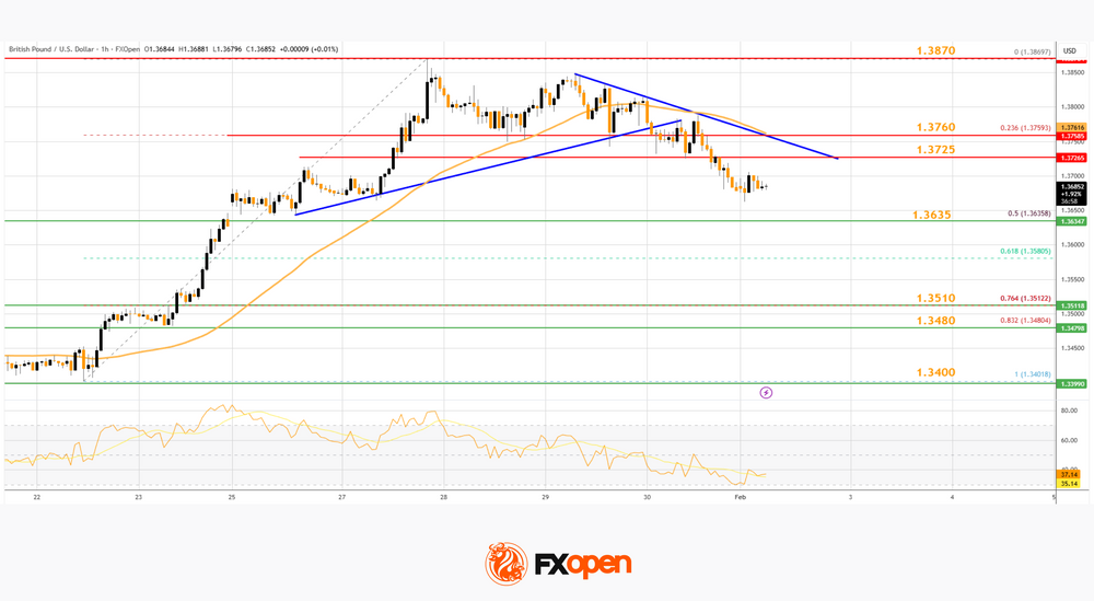 On the hourly chart of GBP/USD at FXOpen, the pair remained well-bid above 1.3500. The British Pound started a decent increase above 1.3650 against the US Dollar.