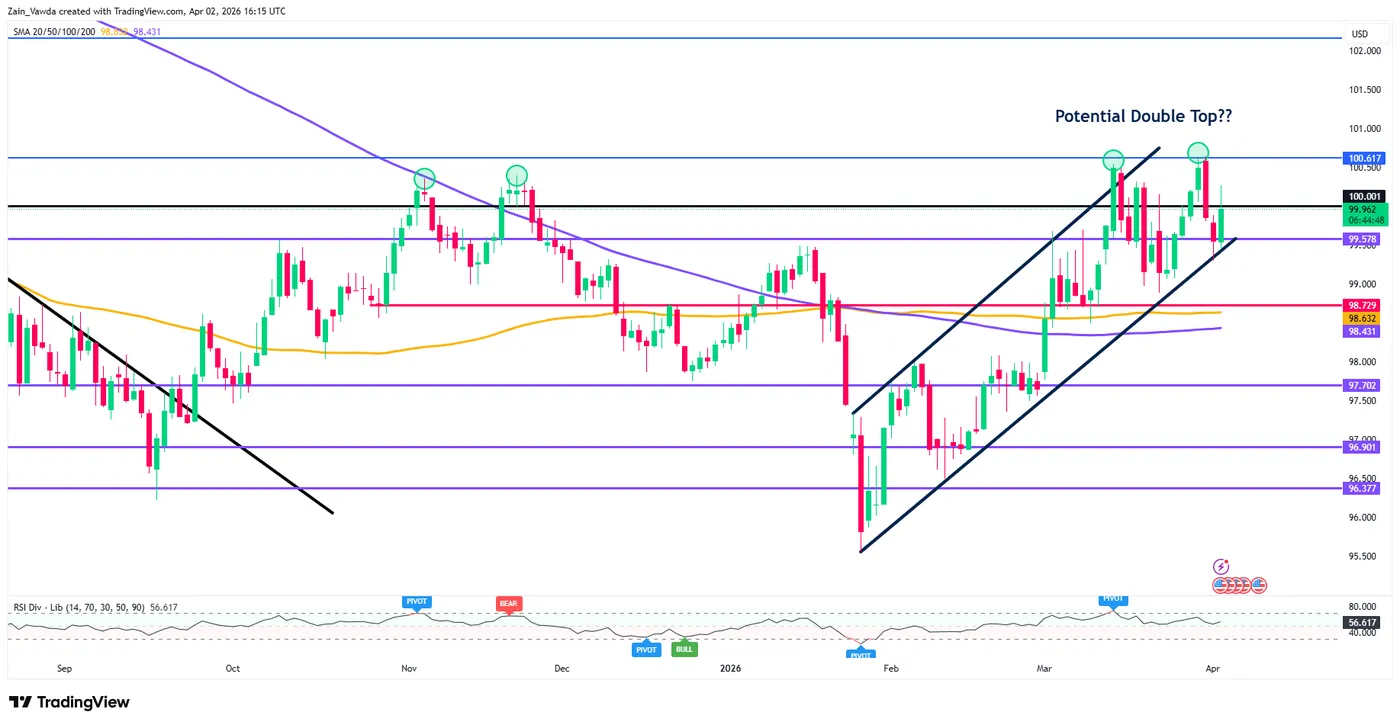- $98 to $100 Momentum Support & 4H 50-period MA (bearish below)