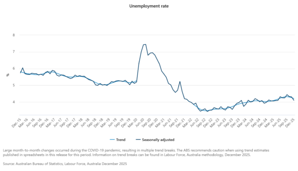 Australia jobs surge 65.2k in December, unemployment drops to 4.1%