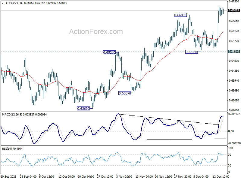In the bigger picture, there is no confirmation that down trend from 0.8006 (2021 high) has completed. Price actions from 0.6169 (2022 low) could be just a medium term corrective pattern. Rise from 0.6269 is seen as the third leg of the pattern. For now, range trading should be seen between 0.6169 and 0.7156 (2023 high), until further developments.
