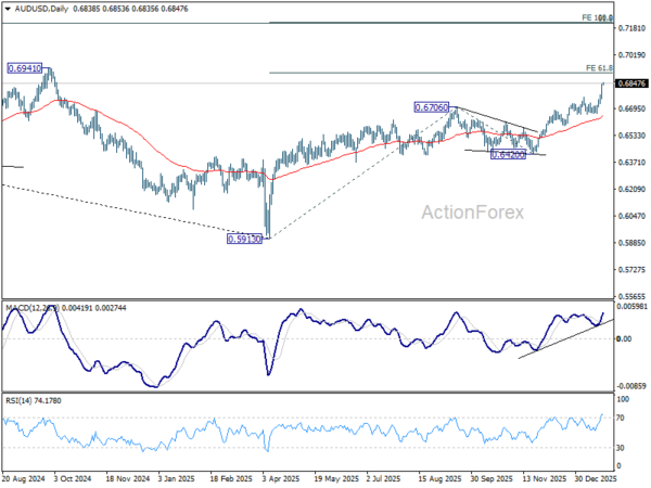 In the bigger picture, current development argues that rise from 0.5913 (2024 low) is reversing whole down trend from 0.8006 (2021 high). Further rally should be seen to 61.8% retracement of 0.8006 to 0.5913 at 0.7206. This will remain the favored case as long as 0.6420 support holds, even in case of deep pullback.