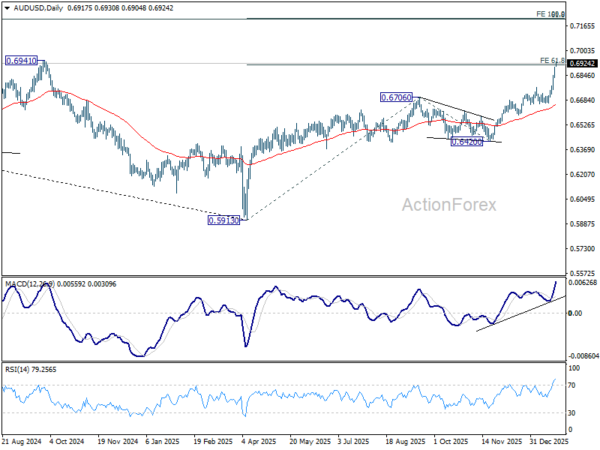 In the bigger picture, current development argues that rise from 0.5913 (2024 low) is reversing whole down trend from 0.8006 (2021 high). Further rally should be seen to 61.8% retracement of 0.8006 to 0.5913 at 0.7206. This will remain the favored case as long as 0.6420 support holds, even in case of deep pullback.