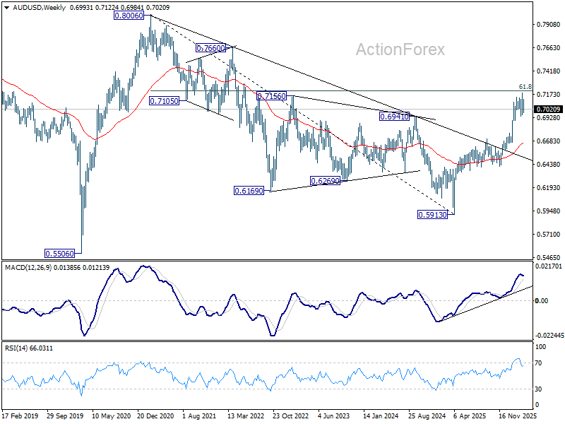In the bigger picture, current development argues that rise from 0.5913 (2024 low) is reversing whole down trend from 0.8006 (2021 high). Decisive break of 61.8% retracement of 0.8006 to 0.5913 at 0.7206 will pave the way back to 0.8006. This will remain the favored case as long as 0.6706 resistance turned support holds, even in case of deep pullback.