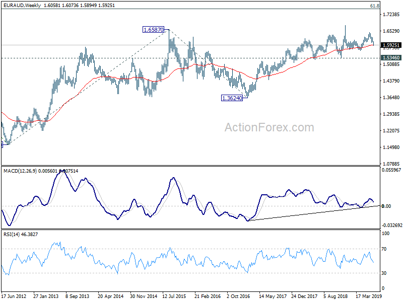 In the bigger picture, as long as 1.5346 support holds, outlook will still remain bullish. Up trend from 1.1602 (2012 low) is expected to resume sooner or later. Break of 1.6765 will target 61.8% retracement of 2.1127 (2008 high) to 1.1602 at 1.7488 next. However, firm break of 1.5346 key support will indicate trend reversal and turn outlook bearish.