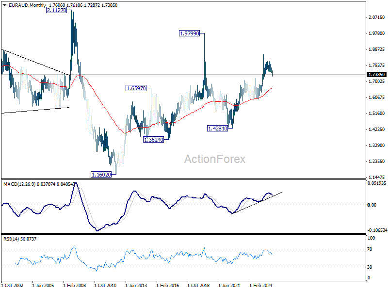 In the longer term picture, rise from 1.4281 is seen as the second leg of the pattern from 1.9799 (2020 high), which is part of the pattern from 2.1127 (2008 high). As long as 55 M EMA (now at 1.6610) holds, this second leg could still extend higher.