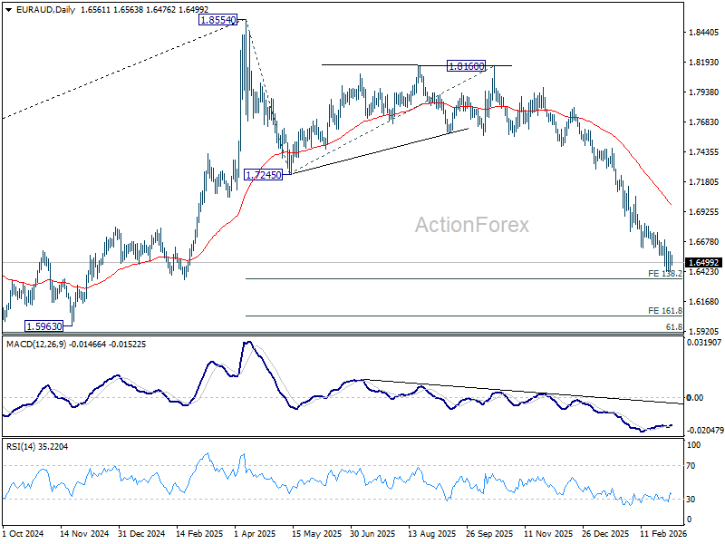 In the bigger picture, fall from 1.8554 medium term top is seen as reversing the whole up trend from 1.4281 (2022 low). Deeper decline should be seen to 61.8% retracement of 1.4281 to 1.8554 at 1.5913, which is slightly below 1.5963 structural support. For now, risk will stay on the downside as long as 1.7245 support turned resistance holds, even in case of strong rebound.