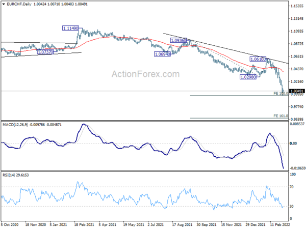A temporary low is formed at 0.9907 in EUR/CHF with current recovery. Intraday bias is turned neutral first. Some consolidation could be seen, but upside should be limited well below 1.0298 support turned resistance to bring down trend resumption. On the downside, firm break of 0.9970 will target 161.8% projection of 1.0936 to 1.0298 from 1.0610 at 0.9578.