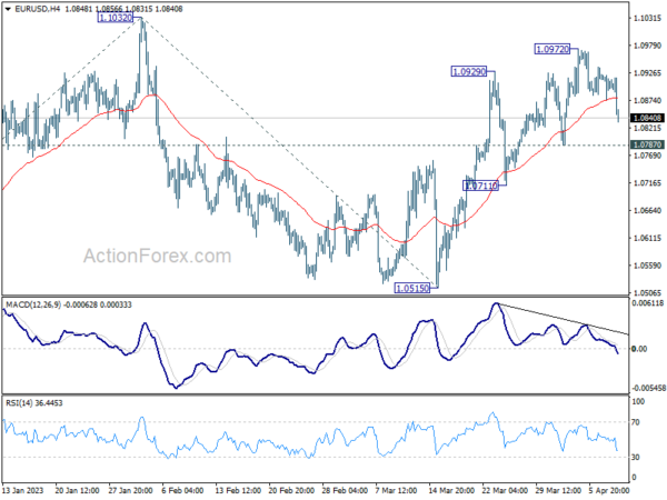 EUR/USD’s retreat from 1.0972 extends lower today but stays well above 1.0787 support. Intraday bias remains neutral and another rise is still expected. Above 1.0972 will resume the rally from 1.0515 to retest 01.1032 high. Firm break there will resume larger up trend from 0.9534. However, break of 1.0787 will turn bias back to the downside for 1.0711 support instead.