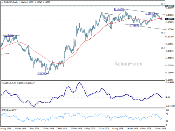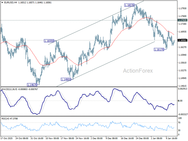 Daily Pivots: (S1) 1.1626; (P) 1.1652; (R1) 1.1669; More….
